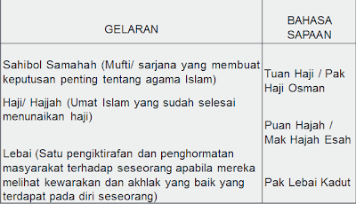 - Bahasa sapaan mesti digunakan dengan betul dan sesuai mengikut konteks semasa berkomunikasi supaya menjaga air muka orang lain serta tidak menyinggung perasaan orang lain.